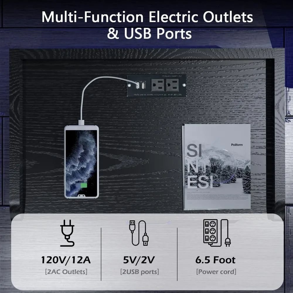 Black Night Stand LED Charging Station 2 Drawers