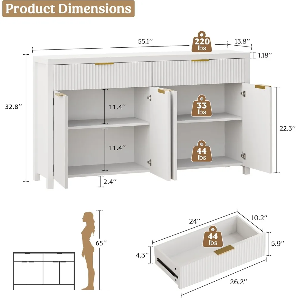 Fluted Storage Cabinet with Drawers Sideboard Cabinet