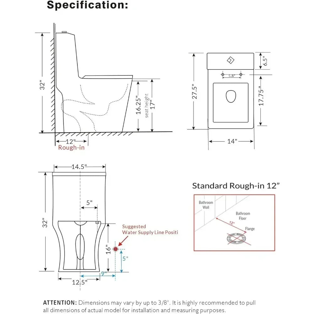 Square One Piece Toilet Black With Gold Button